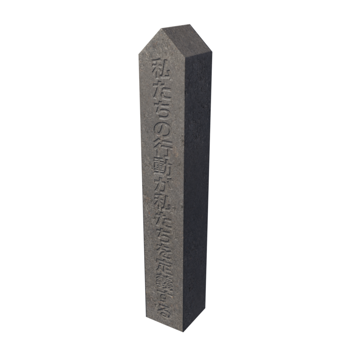 Japanese stele with inscription: "Our actions define us". 20 tris. Collison. Editable.
