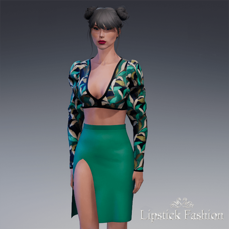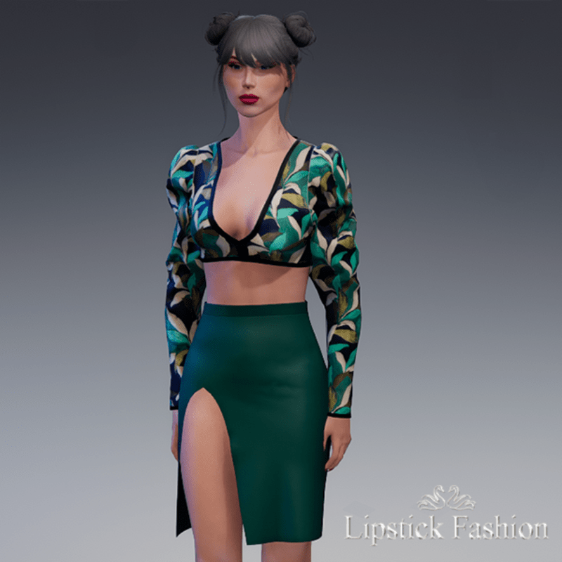 L.F. ELIE TOP GREEN BLACK . Skirt sold separately. Other colors, you can see this garment in my mainstore : https://atlas.sansar.com/experiences/marine-1972/lipstick-fashion-par-marine