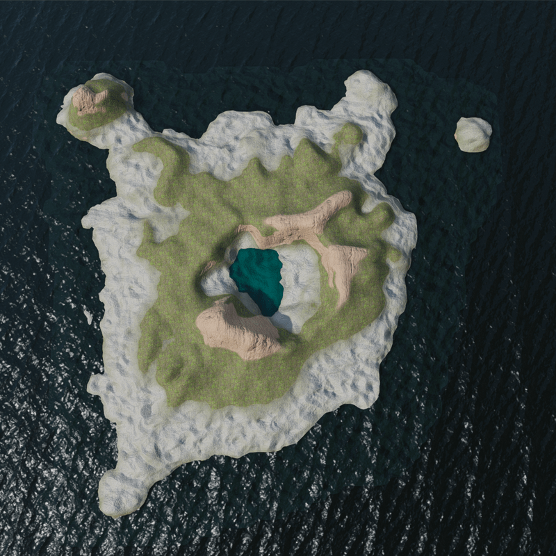 Taal island before the eruption to scale 1:100 with 400x400 meters water layer. 3 layers + detail shader with sand, grass and rock. Water shader layers for the interior and exterior lakes with separate collisions parented to the main container. 64.6 MB, 26.6k tris. Editable.