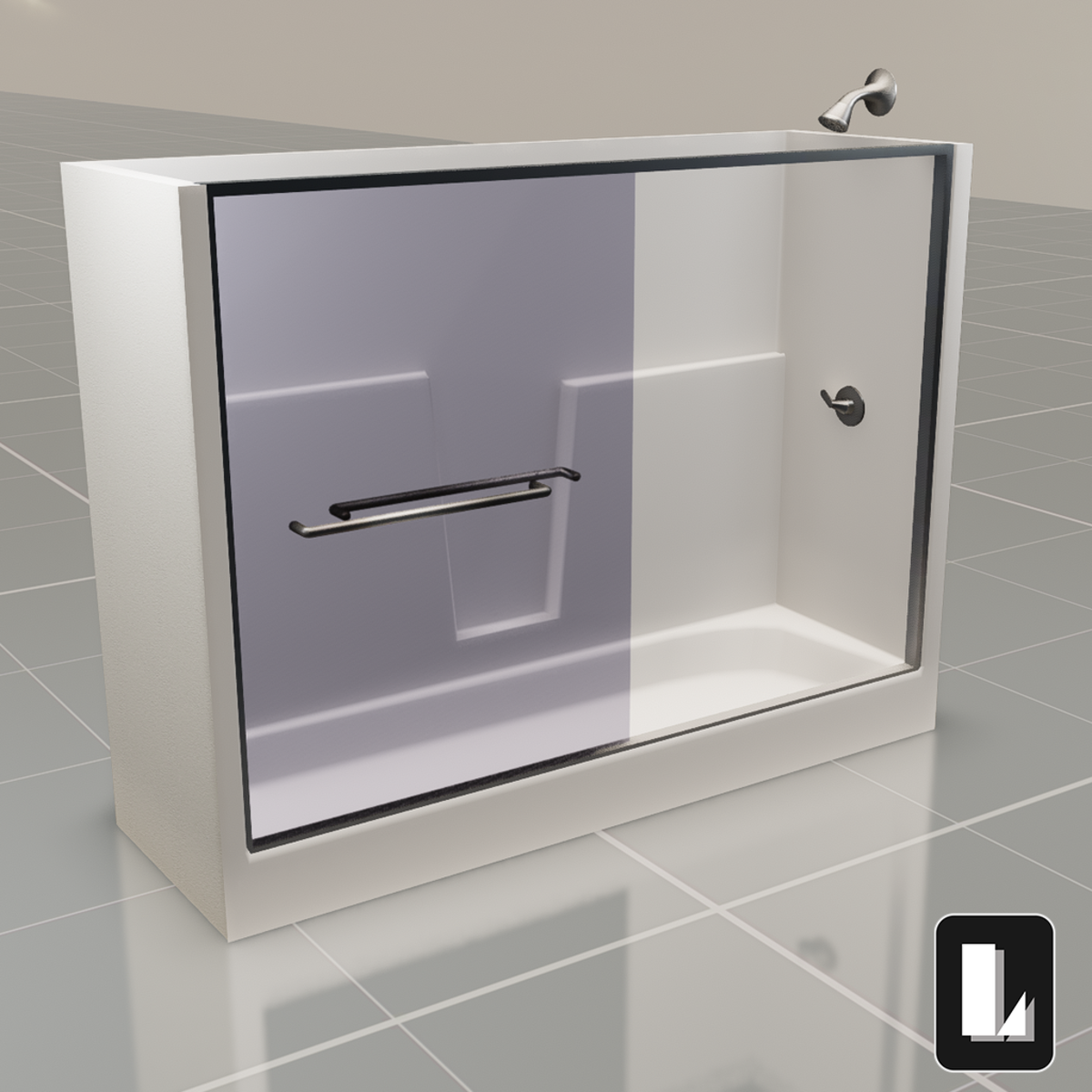 This Collection included Shower, ShowerHead, Shower-Valve, and Wall Enclosure Shower has 678 Polys (has collision mesh, which is optional to use or not, that has 70 polys) ShowerHead has 420 Polys ShowerValve has 306 Polys Wall enclosure (optional to use) has 28 Polys. (Collision mesh has 28 Polys)