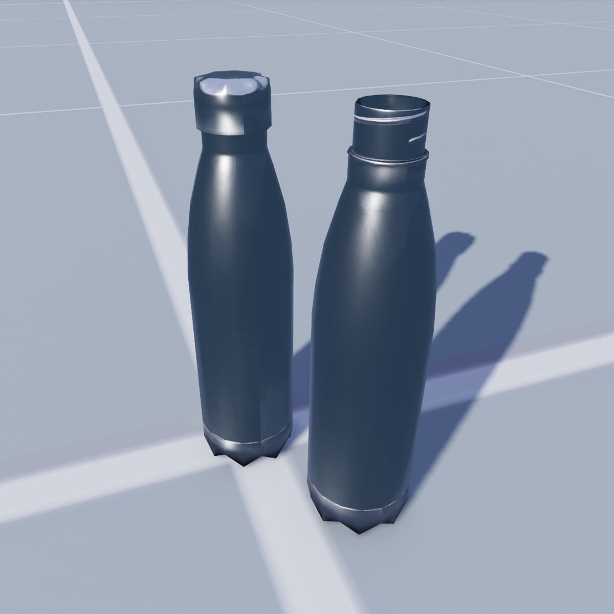 Two aluminium bottles with and without cap. PBR materials. Simple collision. Editable. 10.7 MB, 544/784 tris.