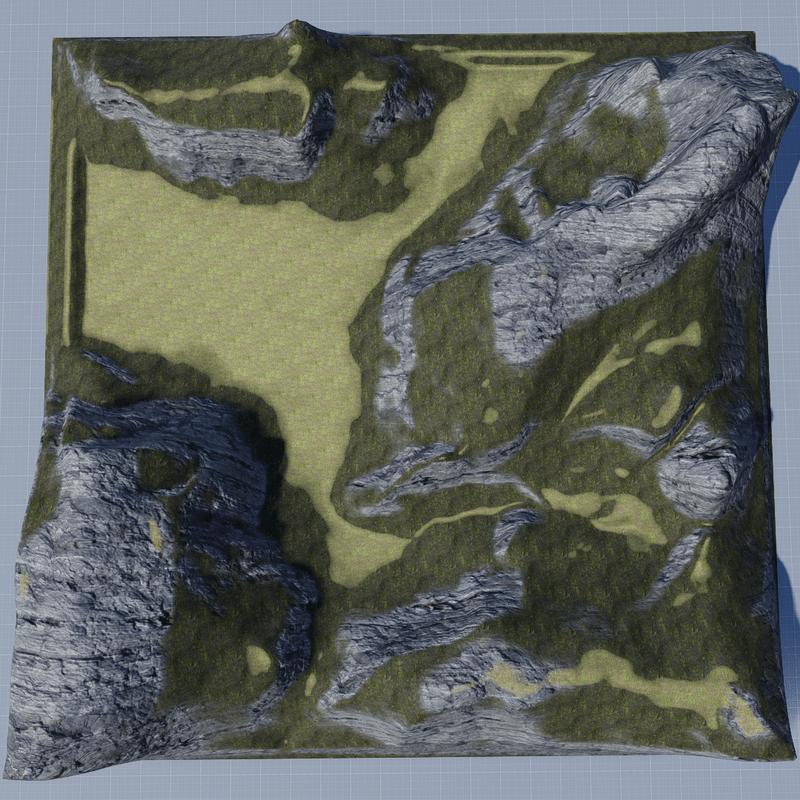 100x100 meters section of Yosemite valley to scale 1:50 3 layers + detail shader with rock and two kinds of ground. 62 MB, 32.8k tris, collision. Editable.