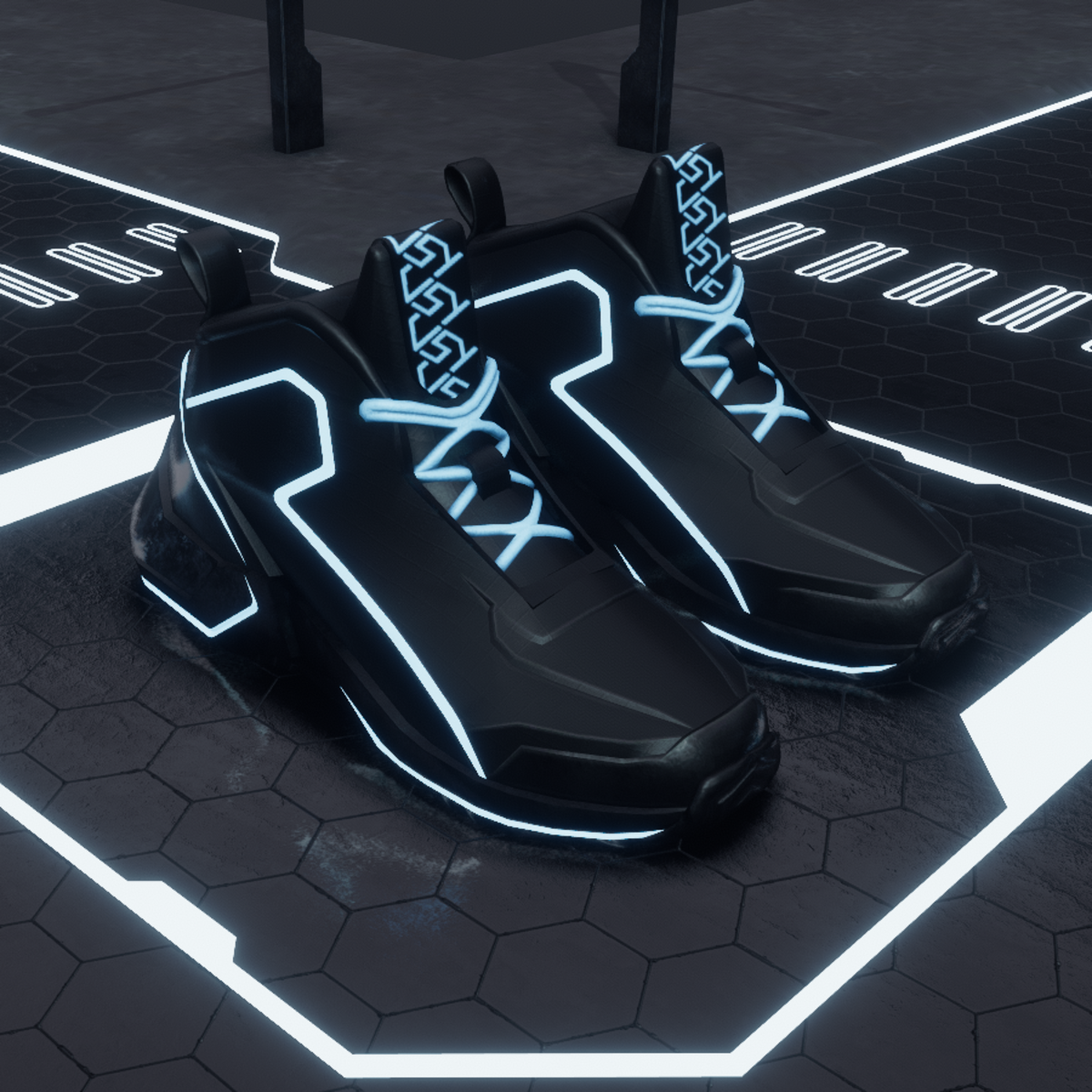 Modern cyberpunk shoes with a TRON-inspired design. Blue color. Also fit female avatars =) Texture sizes: Diffuse - 1k Roughness - 1k Normal - 1k Emissive - 256 Metalness - 64