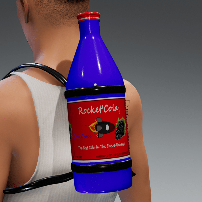 Rocket'Cola: A design/brand created straight from scratch. Rocket'Cola brand only exists in virtual platforms like Second Life & Sansar. Created By, DeathGrip CreaTions. Read the label on the back for ingredients and story behind Rocket'Cola!